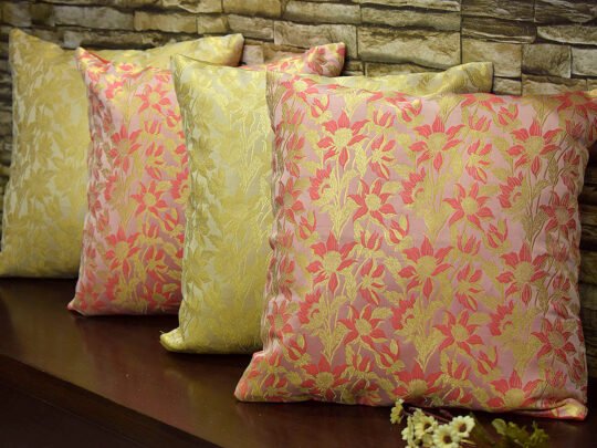 Bageecha Floral Brocade Silk Cushion Covers Combo (Beige & Coral)