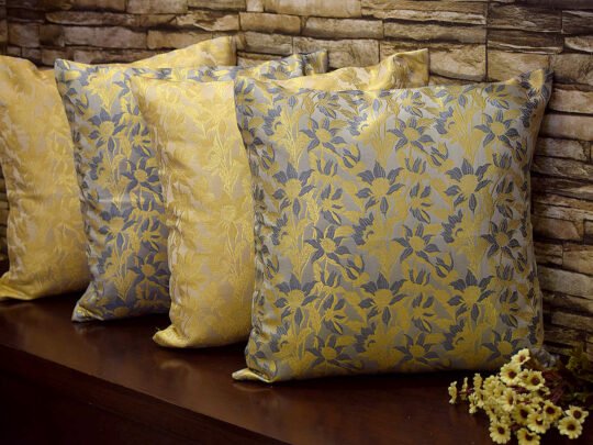 Bageecha Floral Brocade Silk Cushion Covers Combo (Beige & Grey)