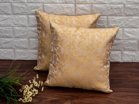Beige Bageecha Floral Brocade Silk Cushion Covers