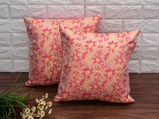 Coral Bageecha Floral Brocade Silk Cushion Covers