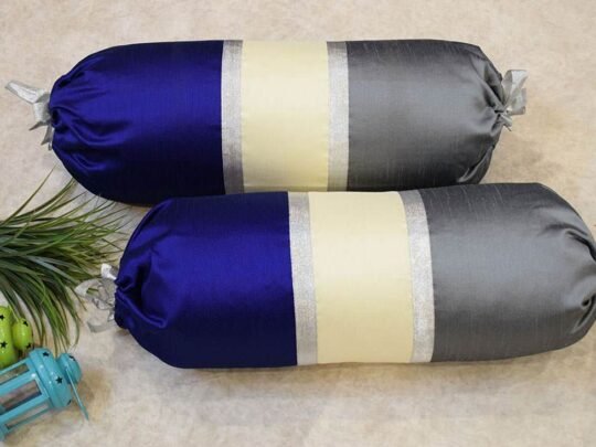 TRI Color Golden Zari Decorative Bolster Covers (Dark Blue, Ivory, Grey)