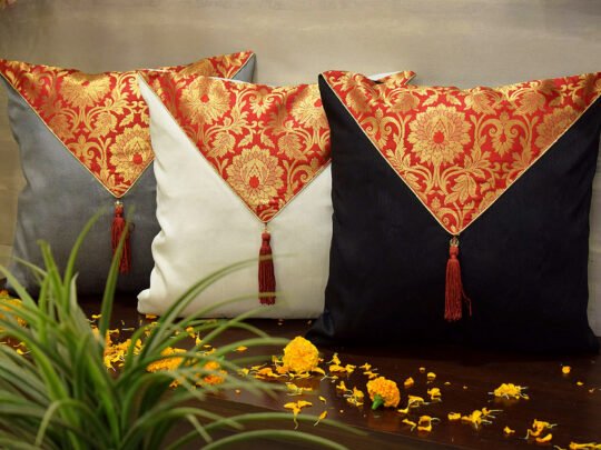 Jashan-E-Mehrang Cushion Covers Combo (Coral, Wine, Orange)