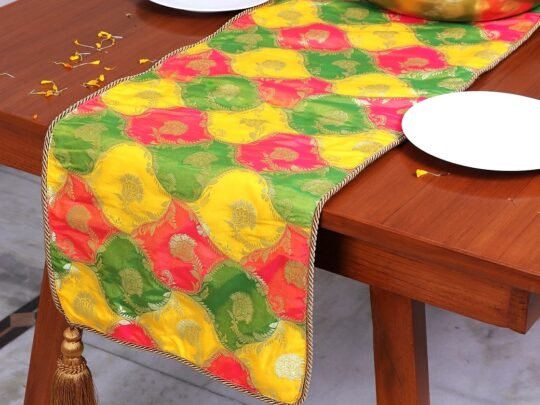 Khin-Khwabeeda Brocade Table Runner (Green, Yellow, Coral)