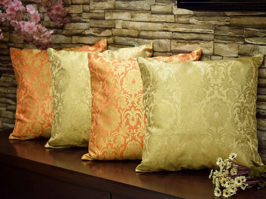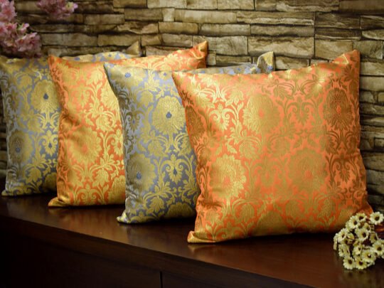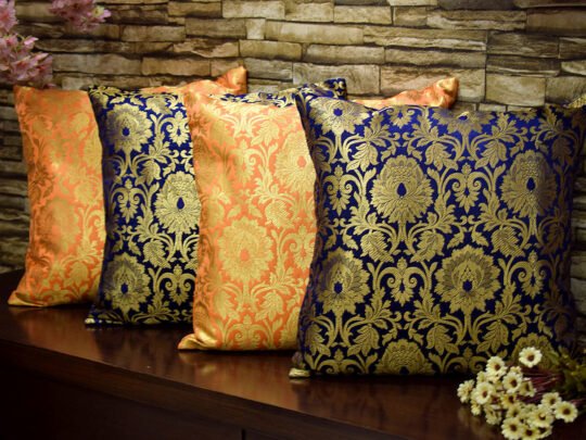 MUGHAL BANARASI Brocade Cushion Covers (Orange & Golden)