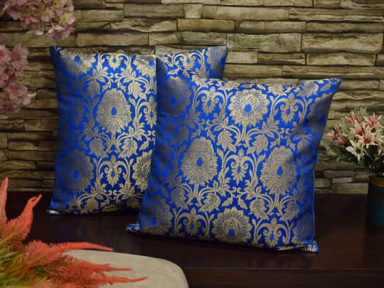 MUGHAL BANARASI Brocade Cushion Covers (Navy Blue & Golden)