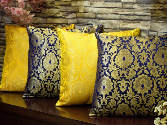 MUGHAL BANARASI Brocade Cushion Covers (Yellow & Golden)