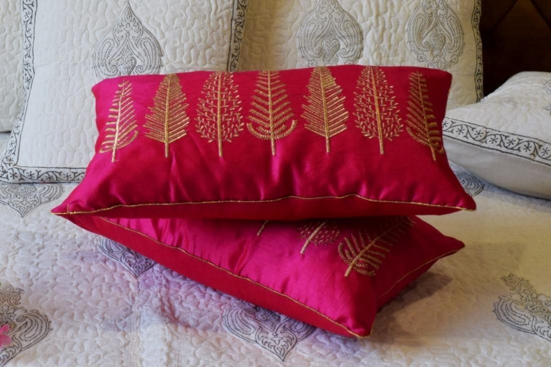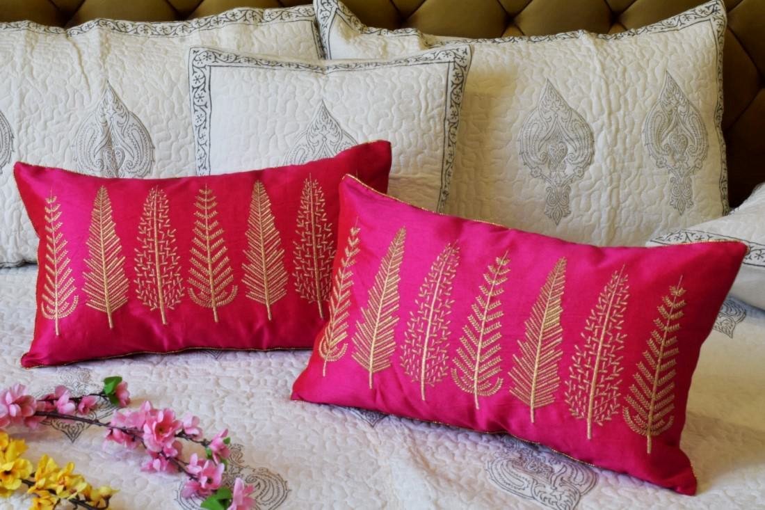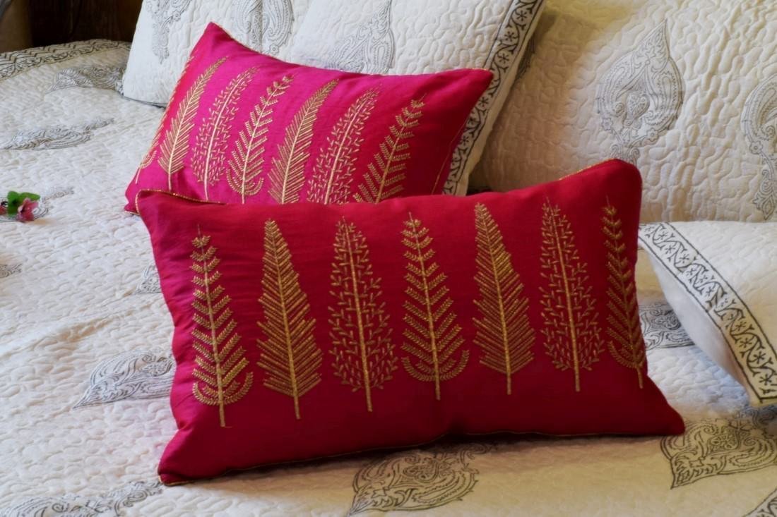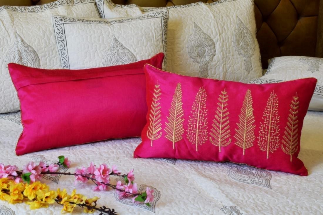 Baag-e-Bahaar Magenta Rectangular Cushion Covers