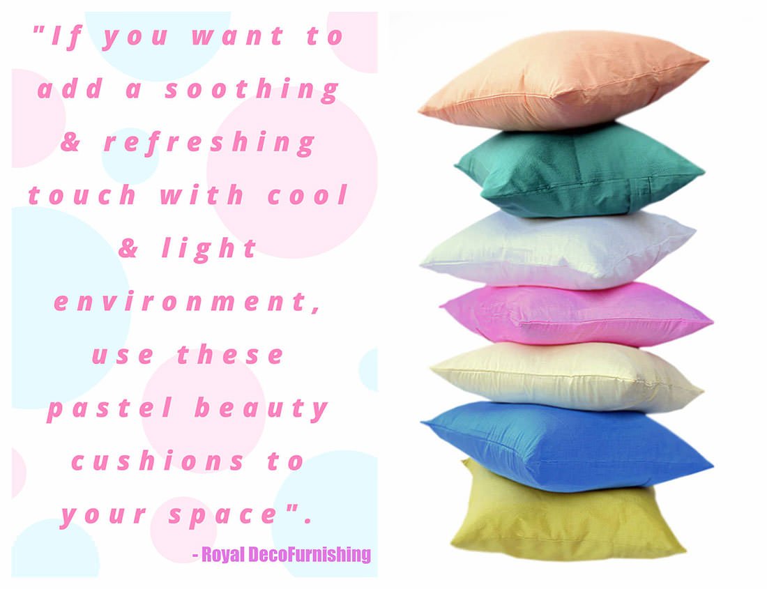Everyone prefers calm & soothing interior decor ideas for the summer & these ideas play a critical role in managing the scorching heat of the summers. We need to opt for cool & soothing colors to keep our home refreshing & pleasant in summer seasons. So BEAT THE HEAT within your home or place by putting these Pastel & Cool shades of cushions on your furniture straight from the house of India’s leading Soft Furnishing Brand “ROYAL DECOFURNISHING” Also adding feather to the Crown of your fashion sense and giving a delightful living experience. Made of premium Art Silk, these cushion covers will retain their quality for years to come. The shades used keep our mind cool & relaxed even during the sweltering heat of the Summers.