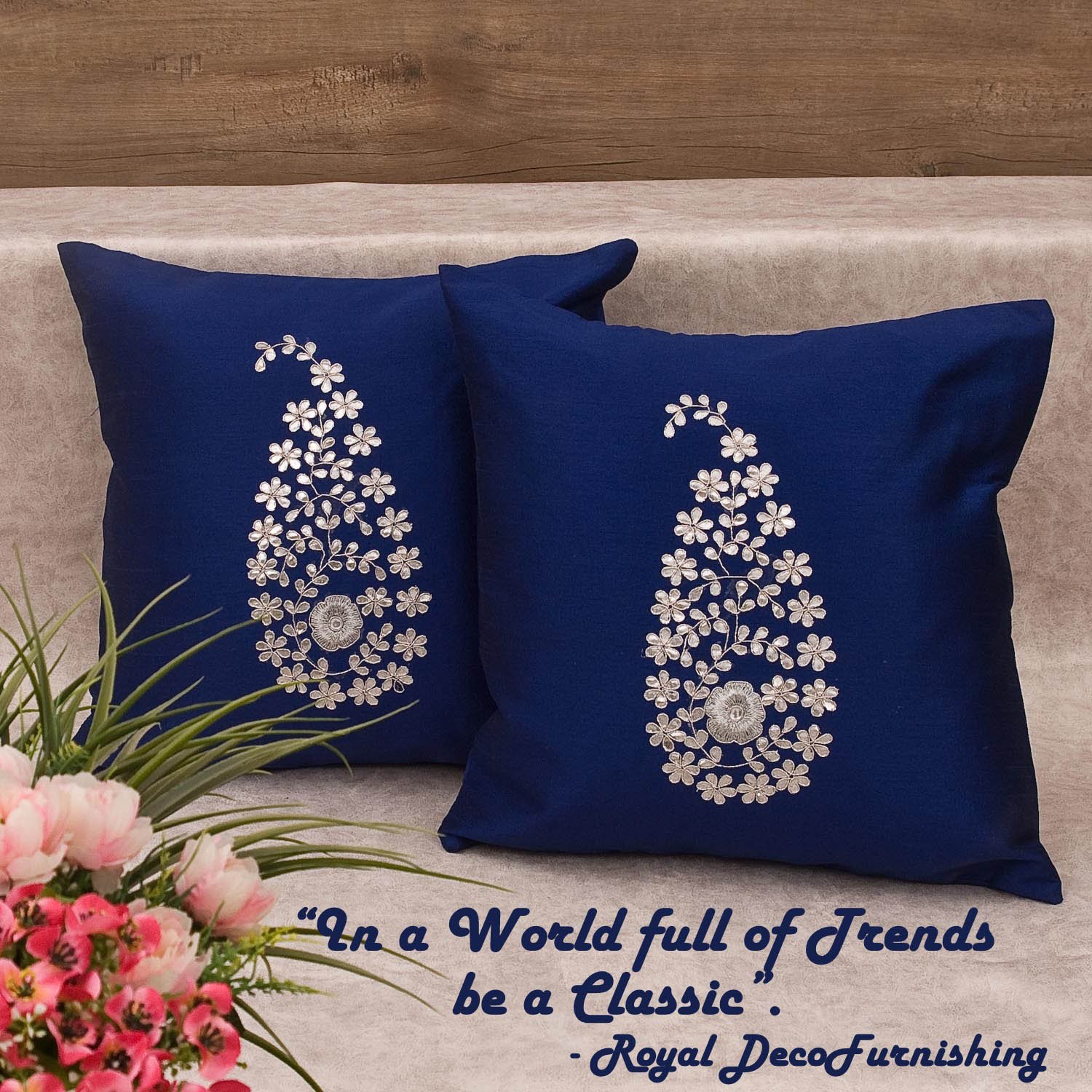 Royal Decofurnishing conceptualized & created the PAISLEY design keeping in mind the finest details & needs to decorate your abode. We introduced this paisley design on the cushions embellished with hand embroidery to give it a Decorative Designer touch. If You are trying to find something Offbeat, Unique & Aggressively Original then you are exactly on right track as Royal DecoFurnishing provides the great opportunity to add these Rich & Elegant (Handmade with pure LOVE) Paisley Leaf Hand Embroidered Gotta Patti work Cushions to your decor. The unique fusion of traditional embroidery work & Paisley design is a perfect combination of modern art and traditional craft. They are the real Showstoppers at your space.