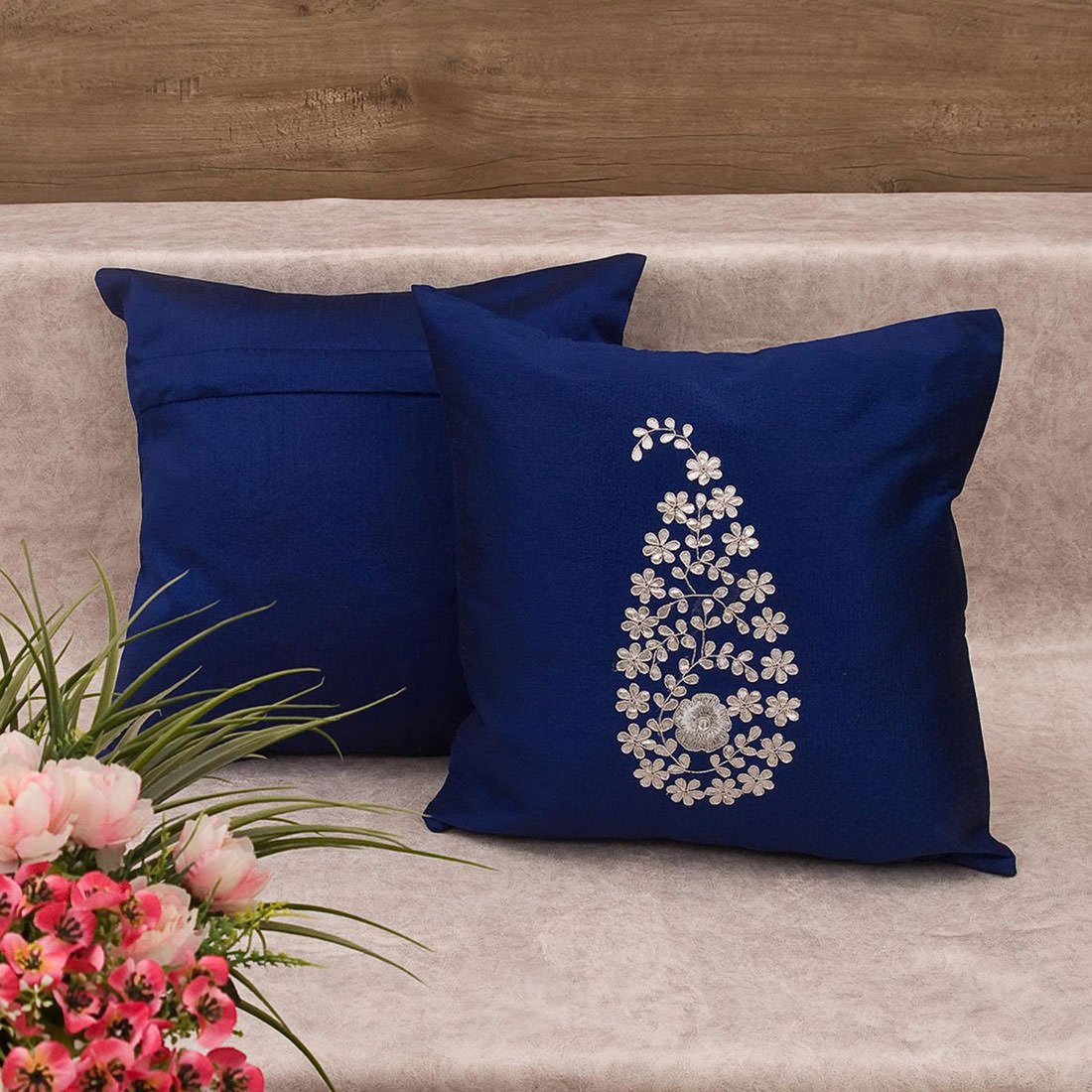 What else could you ask for – Its an Army of around 35 different shades – a Shade to suit / meet every decor need, that these Paisley cushion covers made in. One can choose the color according to the theme used in the interiors. Made in both Golden & Silver hand Embroidery which adds decorative details to the cushion covers. So, you should pick the colors that flatter you according to your tastes and interiors.
