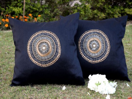 - Design: Hand Embroidered CIRCLUT Ethnic Cushion Covers with Stylish Silver Leaf Zip Lock.