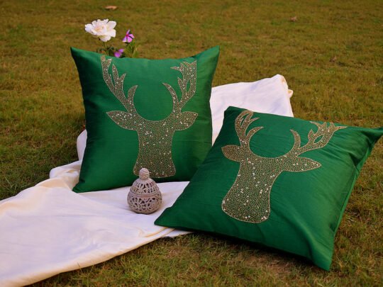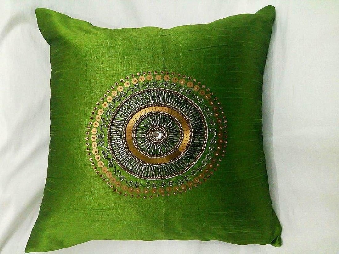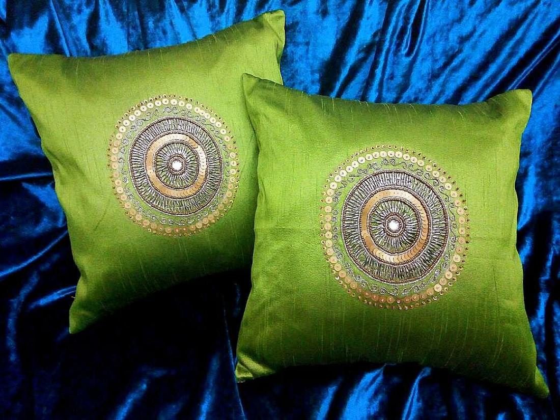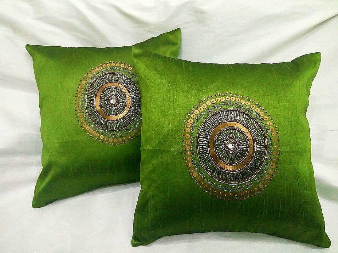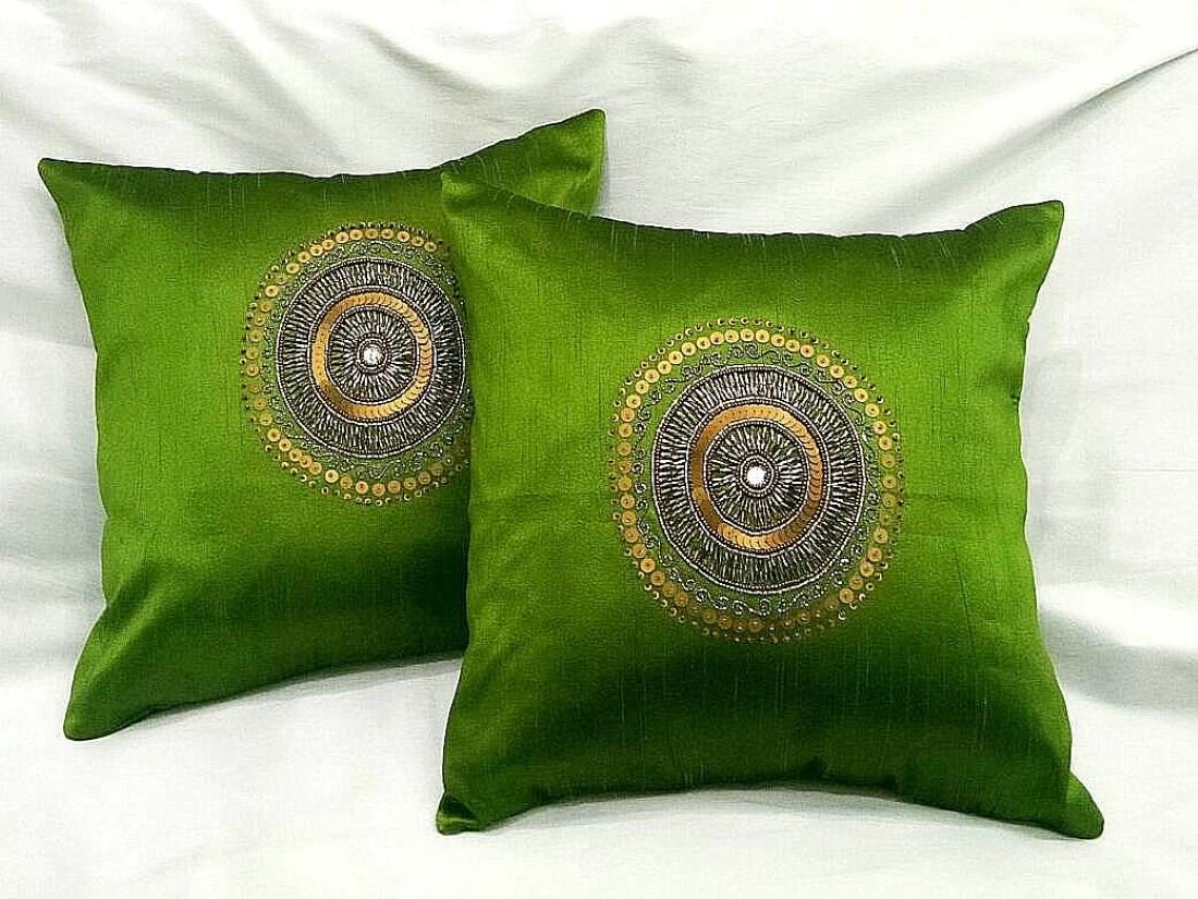 RDF presents this Hand Embroidered CIRCLET DESIGNER ‘OLIVE GREEN’ Ethnic Cushion Covers, which will add an element of elegance & beauty to your home & the place where it is kept. These cushion covers will retain their quality for years to come.