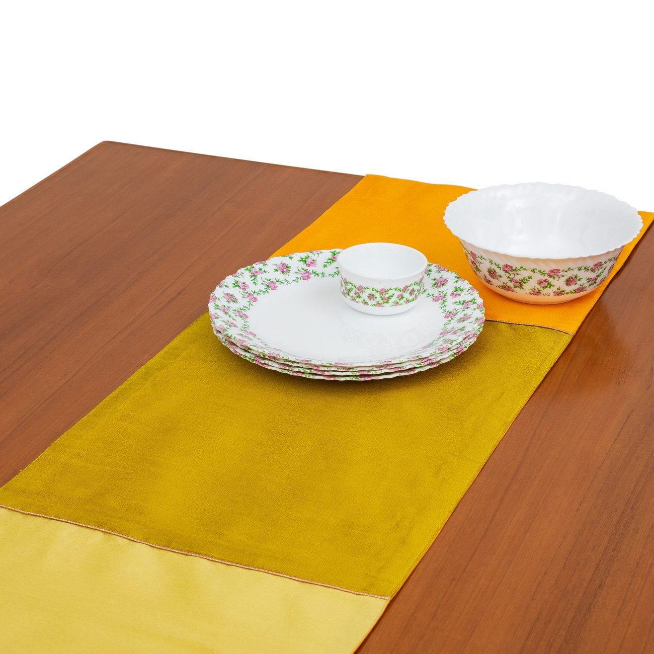 Colors are synonyms with Emotions. So is the Yellow color, which is a symbol of Warmth, Vitality, Inspiration, Happiness, Vibrance, Restful and according to Vaastu this is a favorable color as it spells Sunshine, Cheerfulness, gives a Calm Pleasing feeling. Also researchers have shown that brain releases certain chemicals when it come across Yellow and these chemicals have proportional effect on one’s mood plus it provide sense of patience and wisdom. So here ROYAL DECOFURNISHING presents BRIGHT & APPEALING 4 Shades of yellow Table Runner which will certainly add elegance, brightness, warmth, cozy feel to the interiors and will not just update your space from traditional to trendy but will also make your good emotions soar high, no matter whichever place they are kept