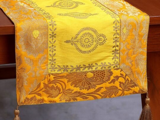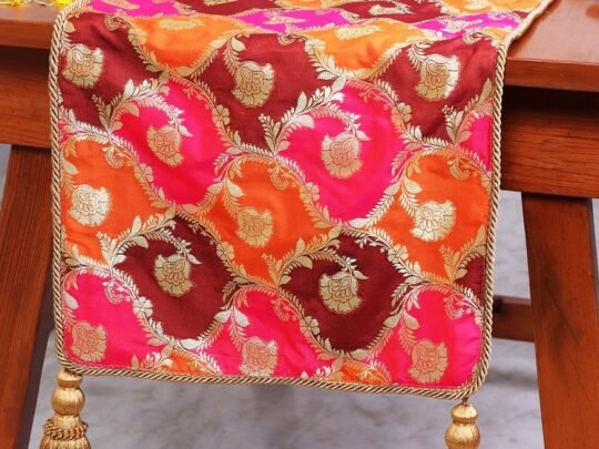 • ART & DESIGN: The table runner is a banarasi Khin-Khwabeeda fabric through which we try to blend the traditional and ancient art of weaving and preserving our heritage, that will add a touch of Modern-Classic look to your decor.