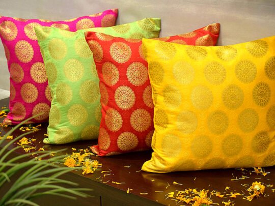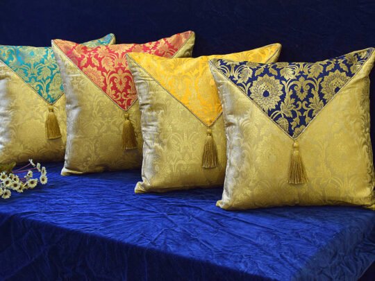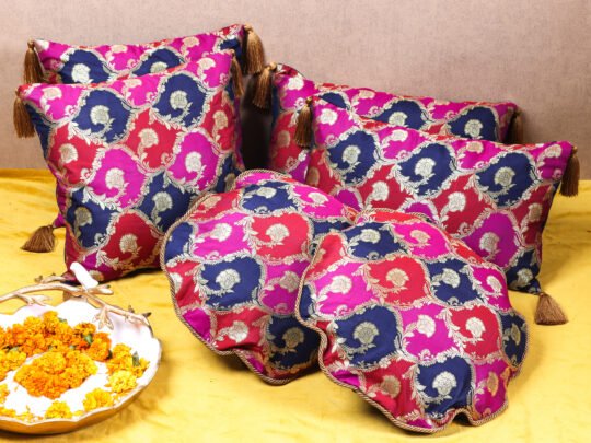• ACCESSORIES: The Square & Rectangular cushions are embellished with 4 Handmade Tassels of golden beads and threads, and the Round ones are with Golden Chord on borders to give a bold and elite look which assures applaud from your guests.