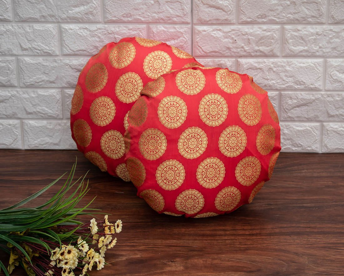 Mandala Brocade Silk Round Cushion Covers (Peach & Golden)
