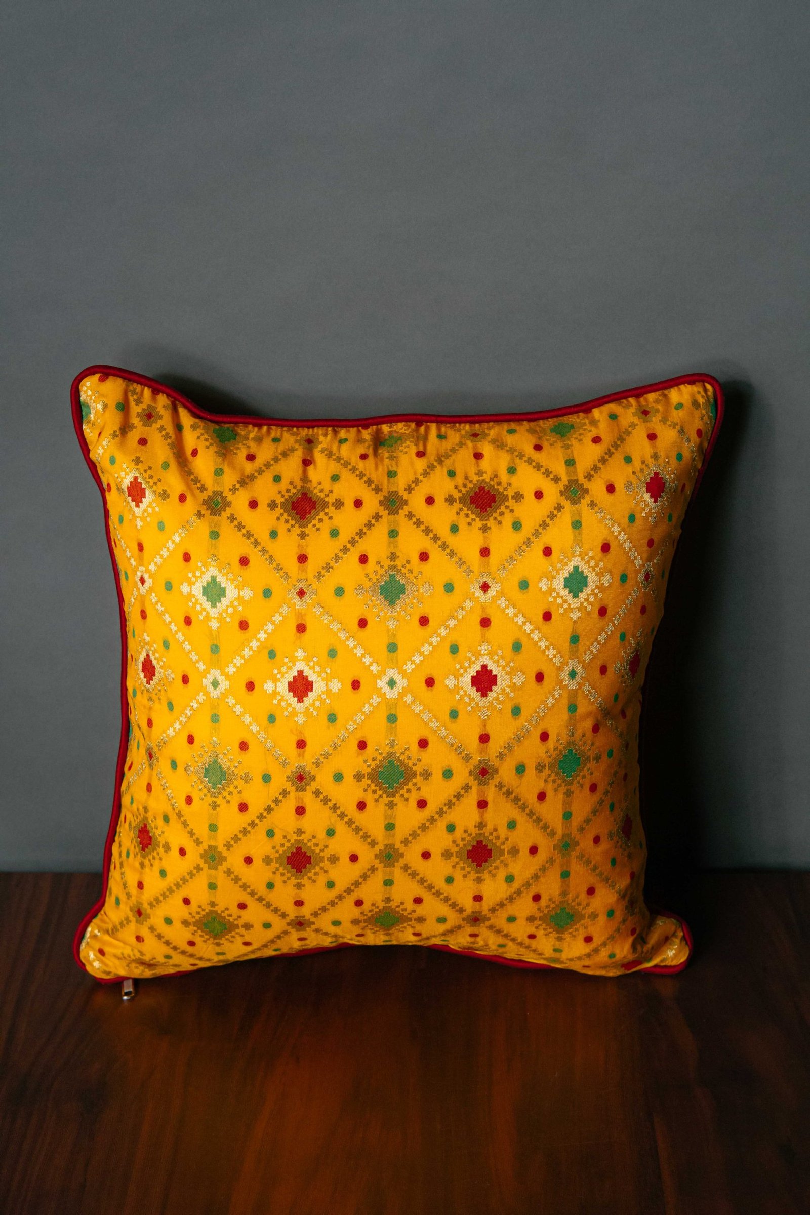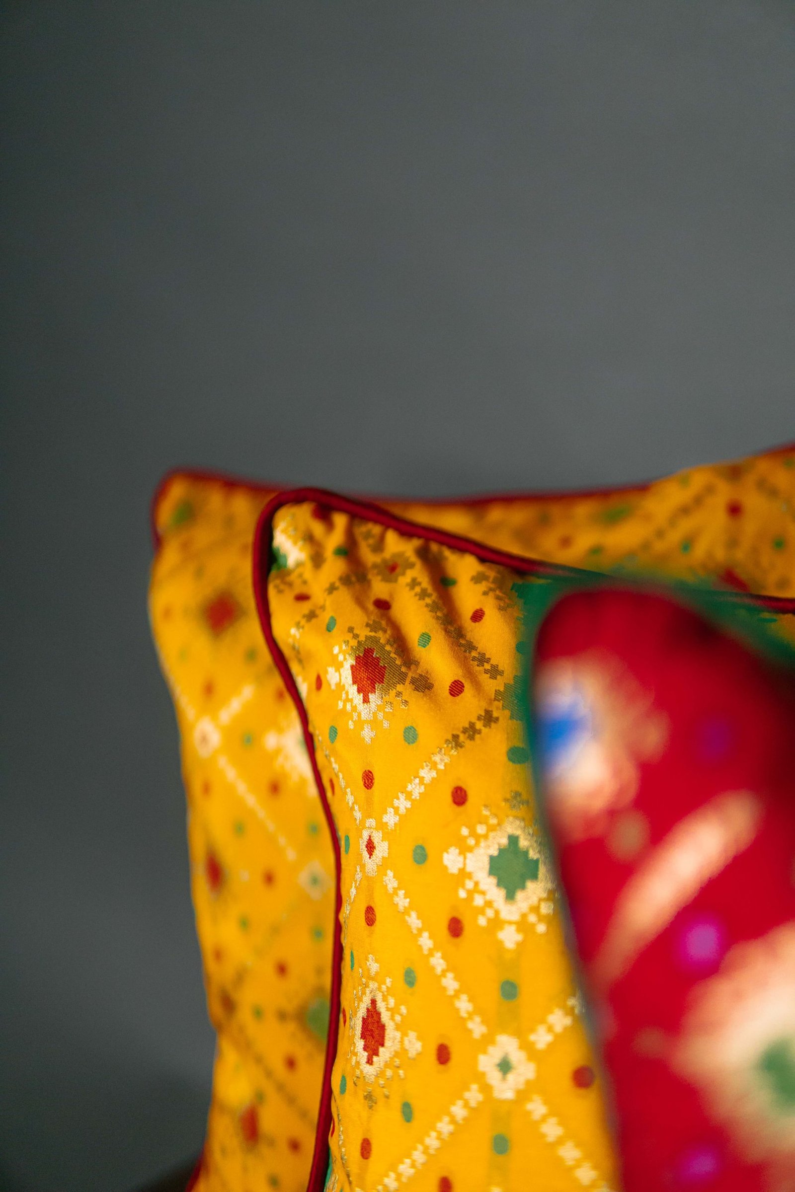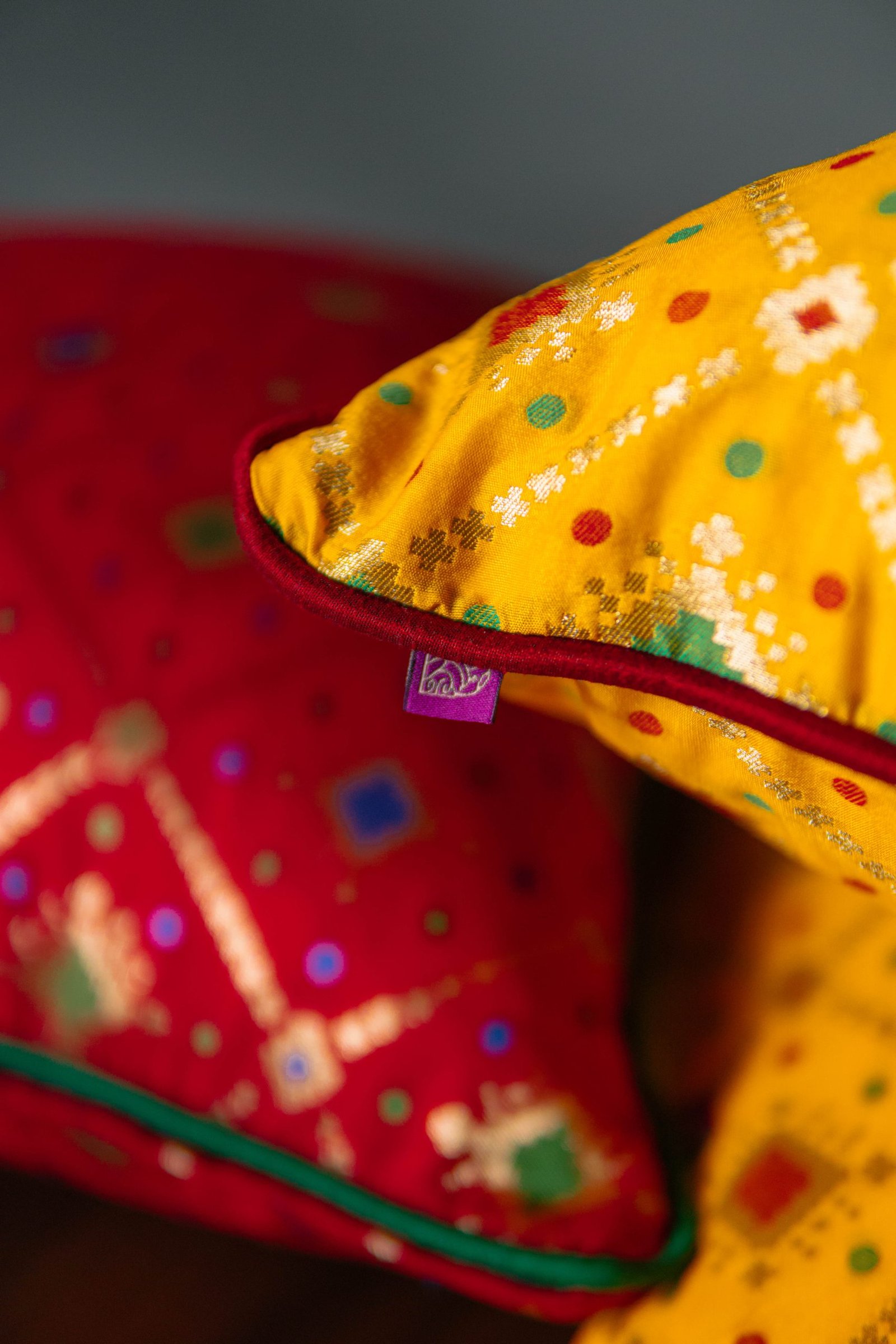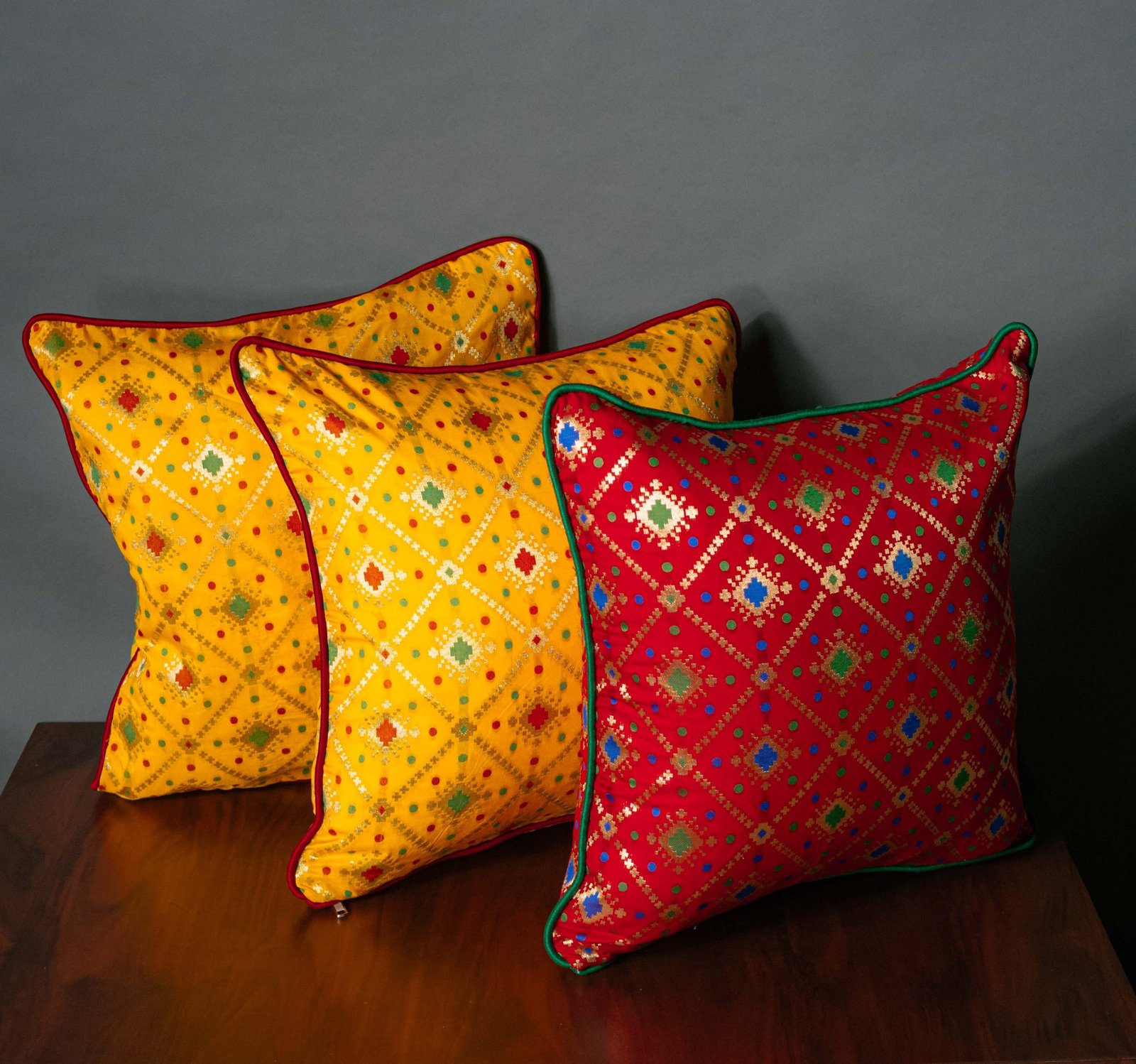 Mesmerizing Colors of Assorted Bandhani Brocade Beauty Cushion Covers (Yellow-Red Combo)