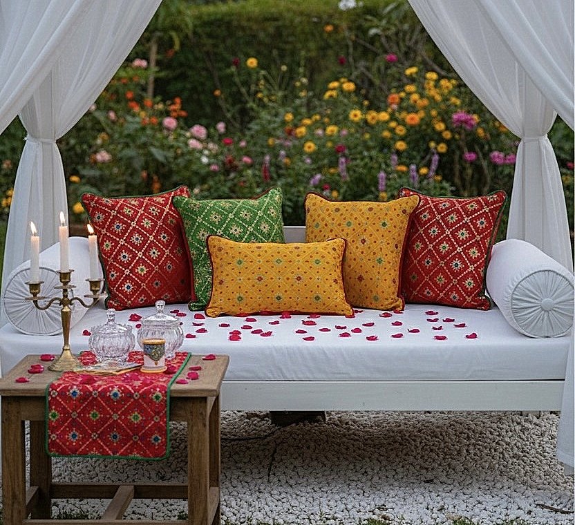 “So Buy Now & bring the fusion of culture to your home with our Bandhani Brocade cushions”.
