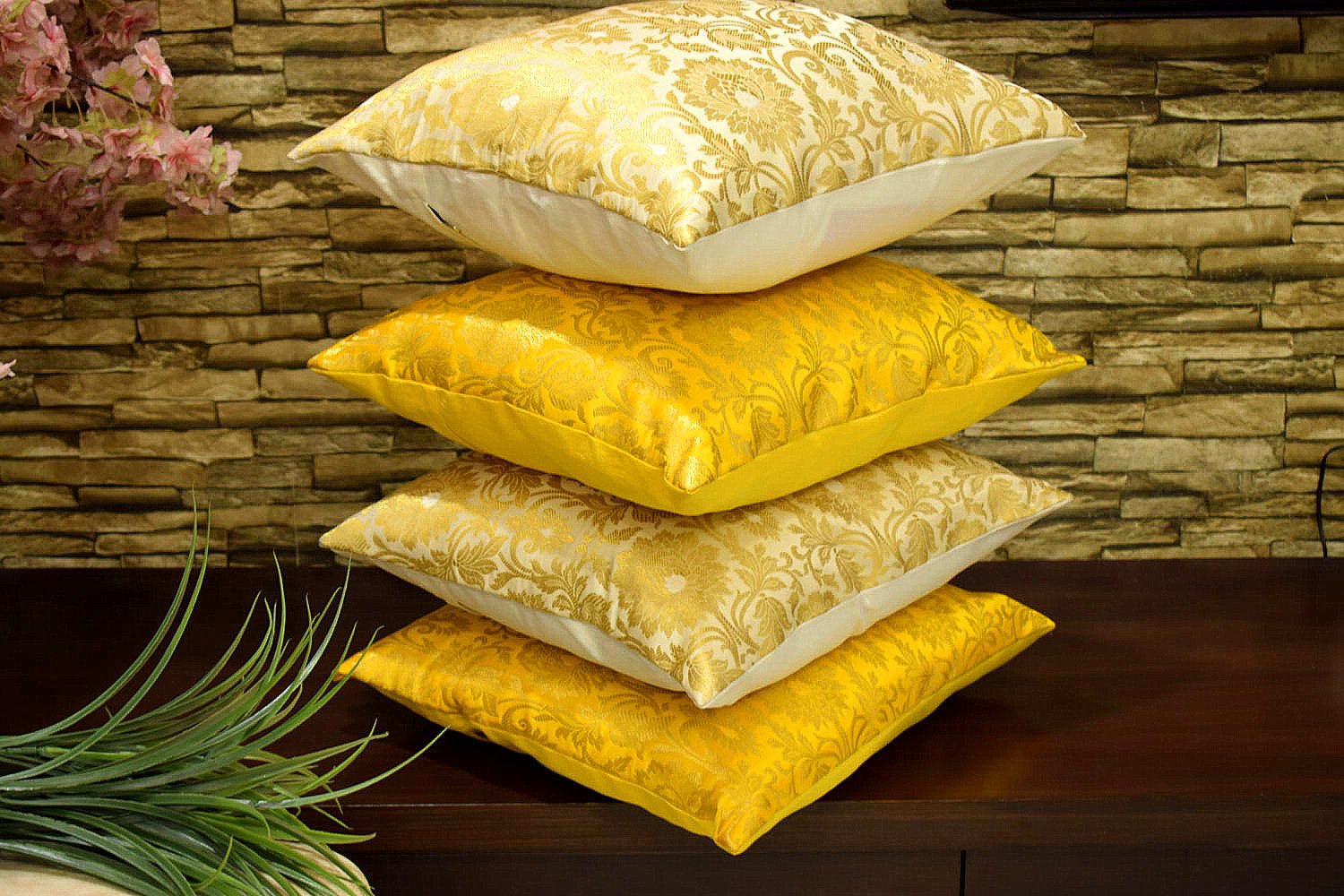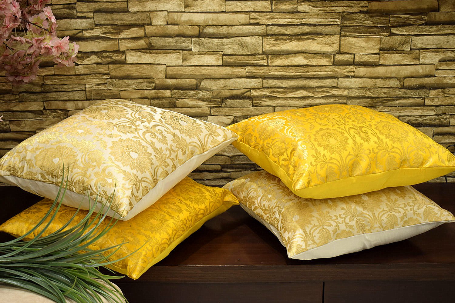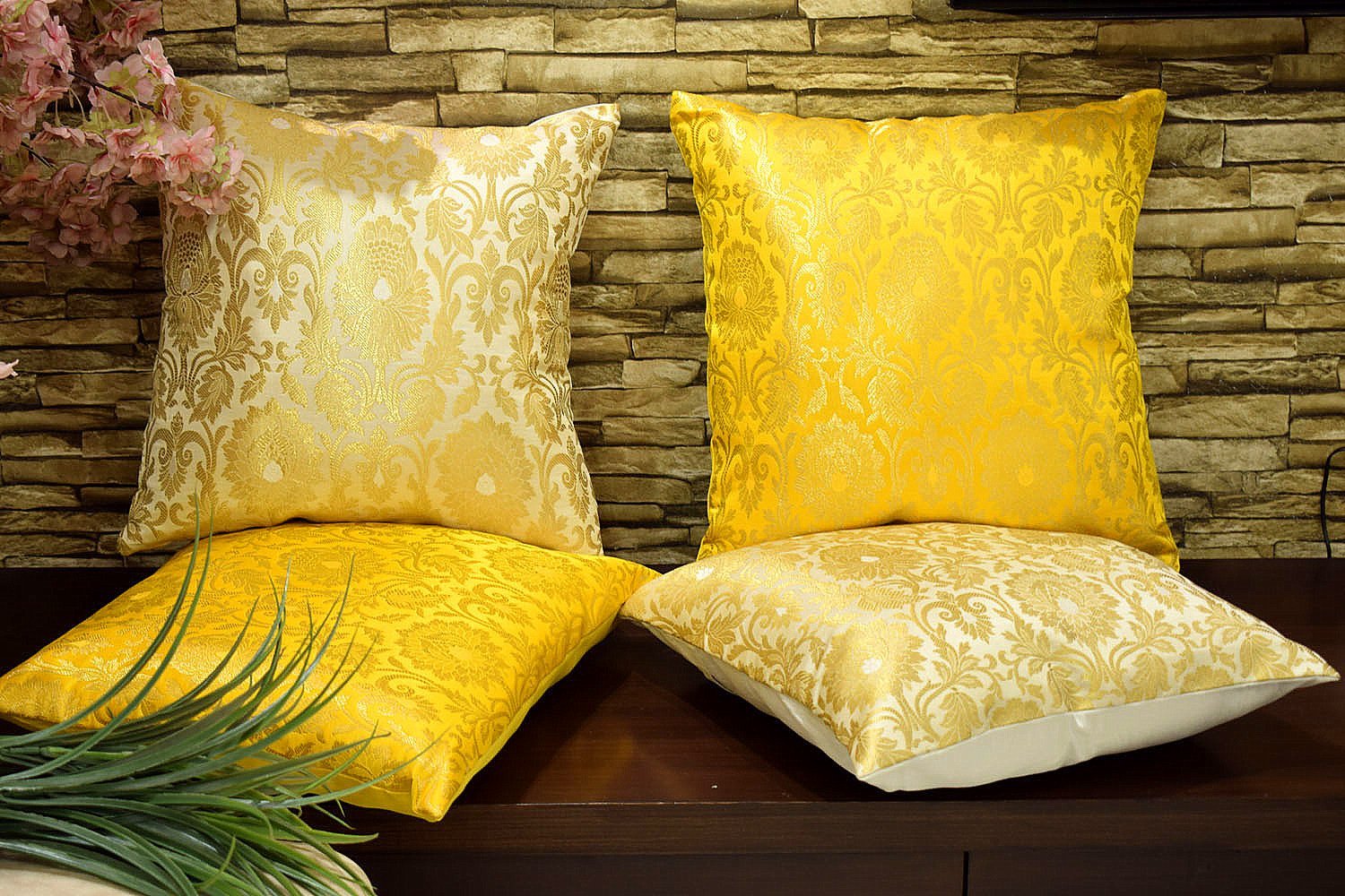 1 review for MUGHAL BANARASI Brocade Cushion Covers Combo (Yellow & White)