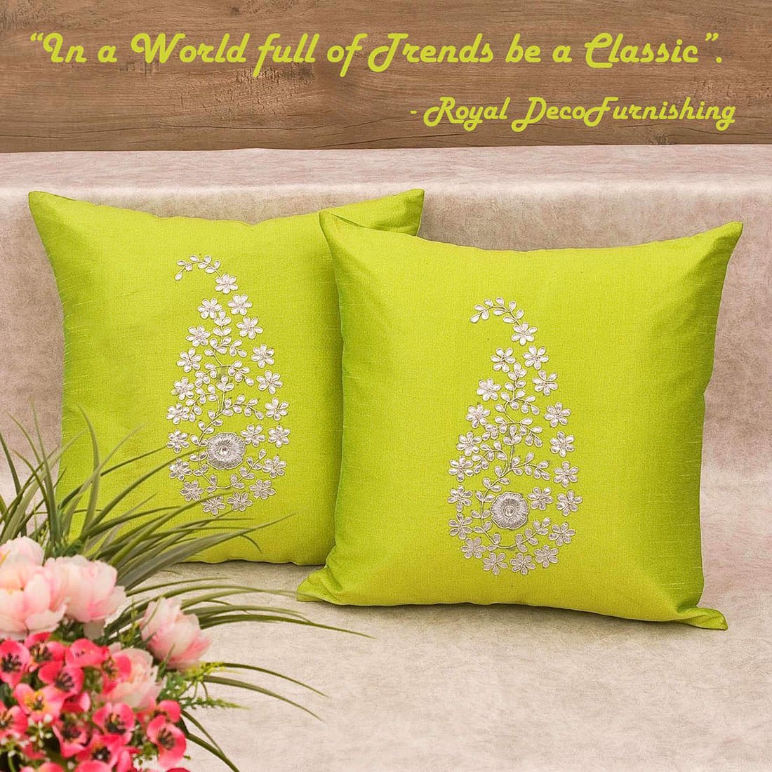 Royal Decofurnishing conceptualized & created the PAISLEY design keeping in mind the finest details & needs to decorate your abode. We introduced this paisley design on the cushions embellished with hand embroidery to give it a Decorative Designer touch. If You are trying to find something Offbeat, Unique & Aggressively Original then you are exactly on right track as Royal DecoFurnishing provides the great opportunity to add these Rich & Elegant (Handmade with pure LOVE) Paisley Leaf Hand Embroidered Gotta Patti work Cushions to your decor. The unique fusion of traditional embroidery work & Paisley design is a perfect combination of modern art and traditional craft. They are the real Showstoppers at your space.