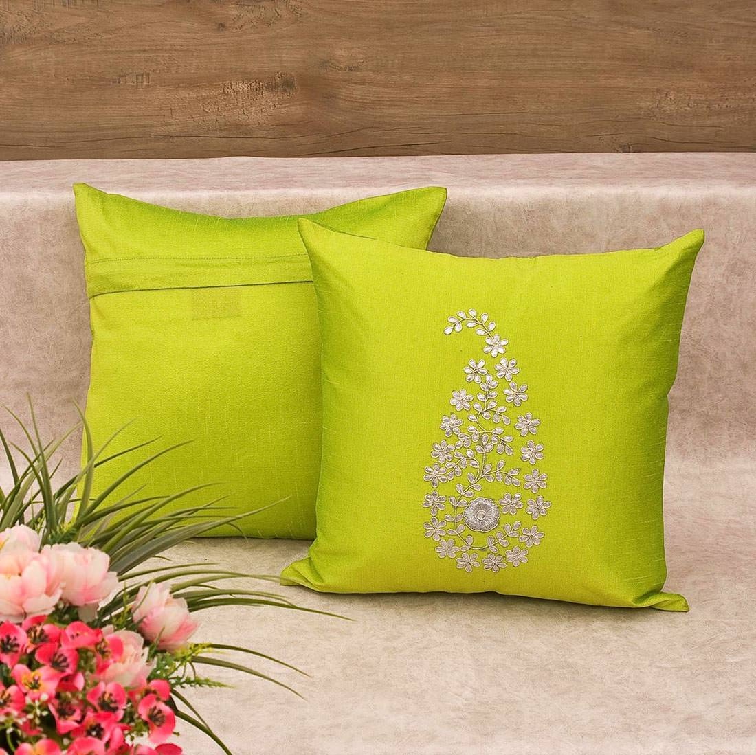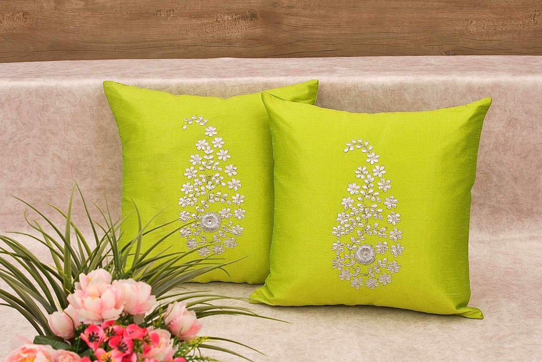 What else could you ask for – Its an Army of around 35 different shades – a Shade to suit / meet every decor need, that these Paisley cushion covers made in. One can choose the color according to the theme used in the interiors. Made in both Golden & Silver hand Embroidery which adds decorative details to the cushion covers. So, you should pick the colors that flatter you according to your tastes and interiors.