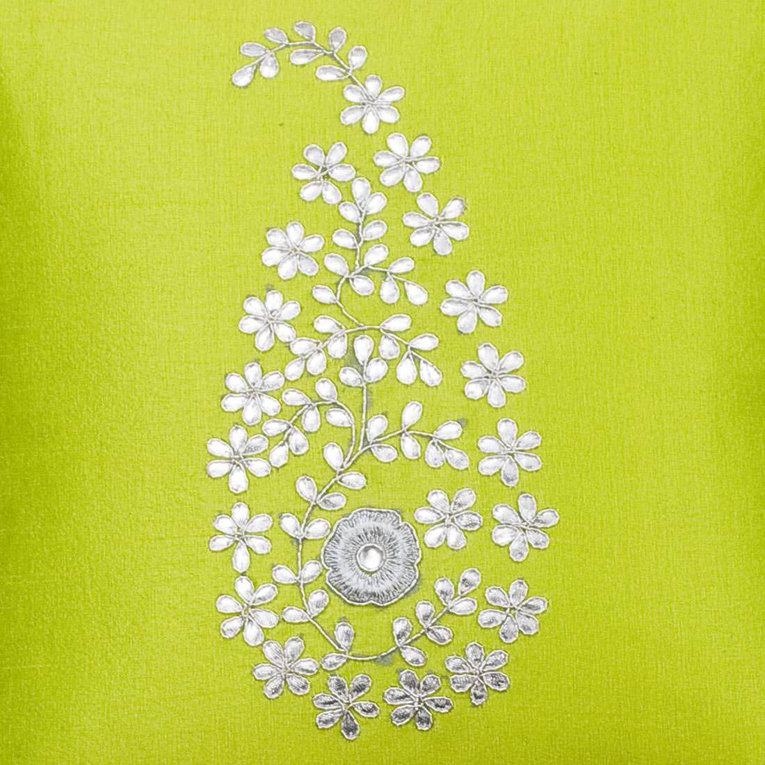 Parrot Green & Silver Paisley Gota Patti Hand Embroidery