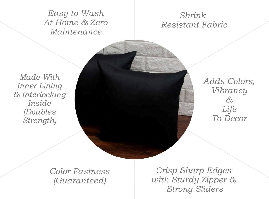 • MATERIAL: Made of premium Art Silk Material on both the sides, these will not loose its Sheen and Colors for the years to come. Stitched firmly with inner lining inside the cushion covers to increase the strength. For Best looks Iron before putting.