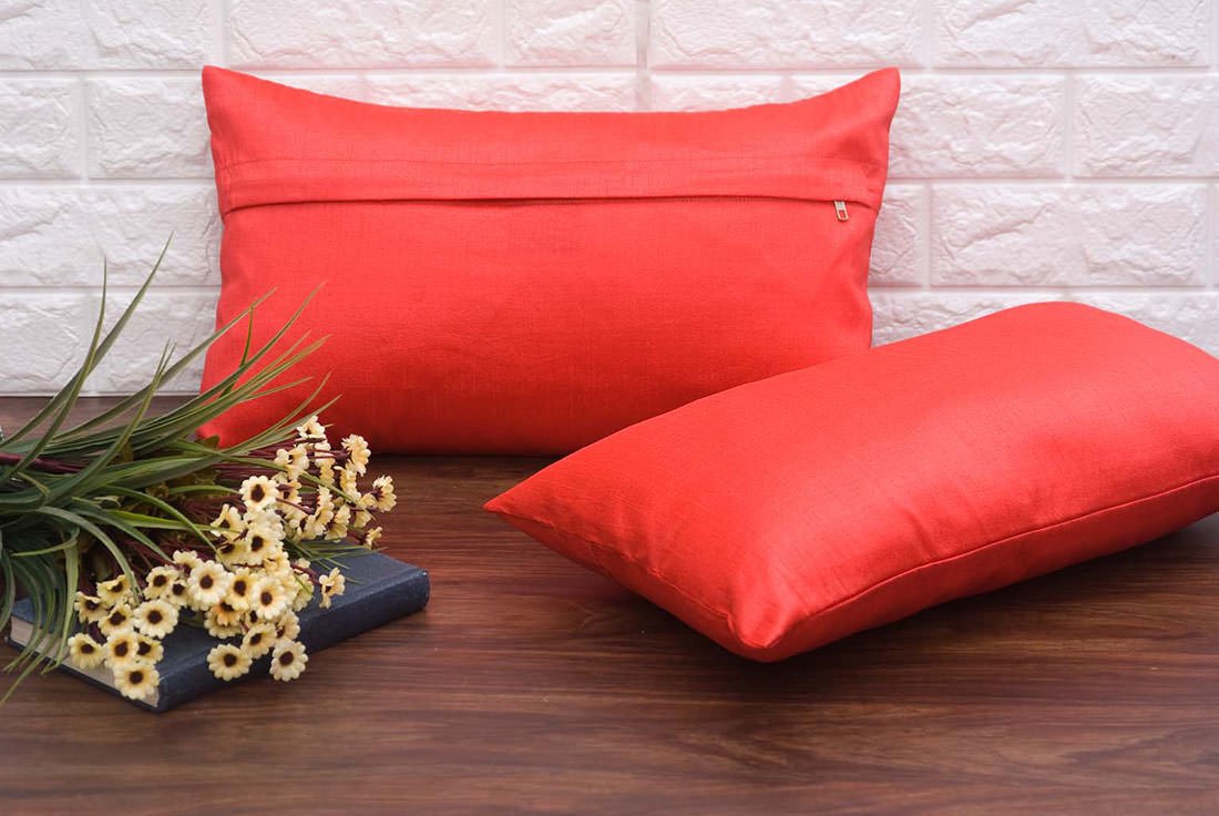 Plain Solid Superlative Coral Red Rectangular Cushion Covers