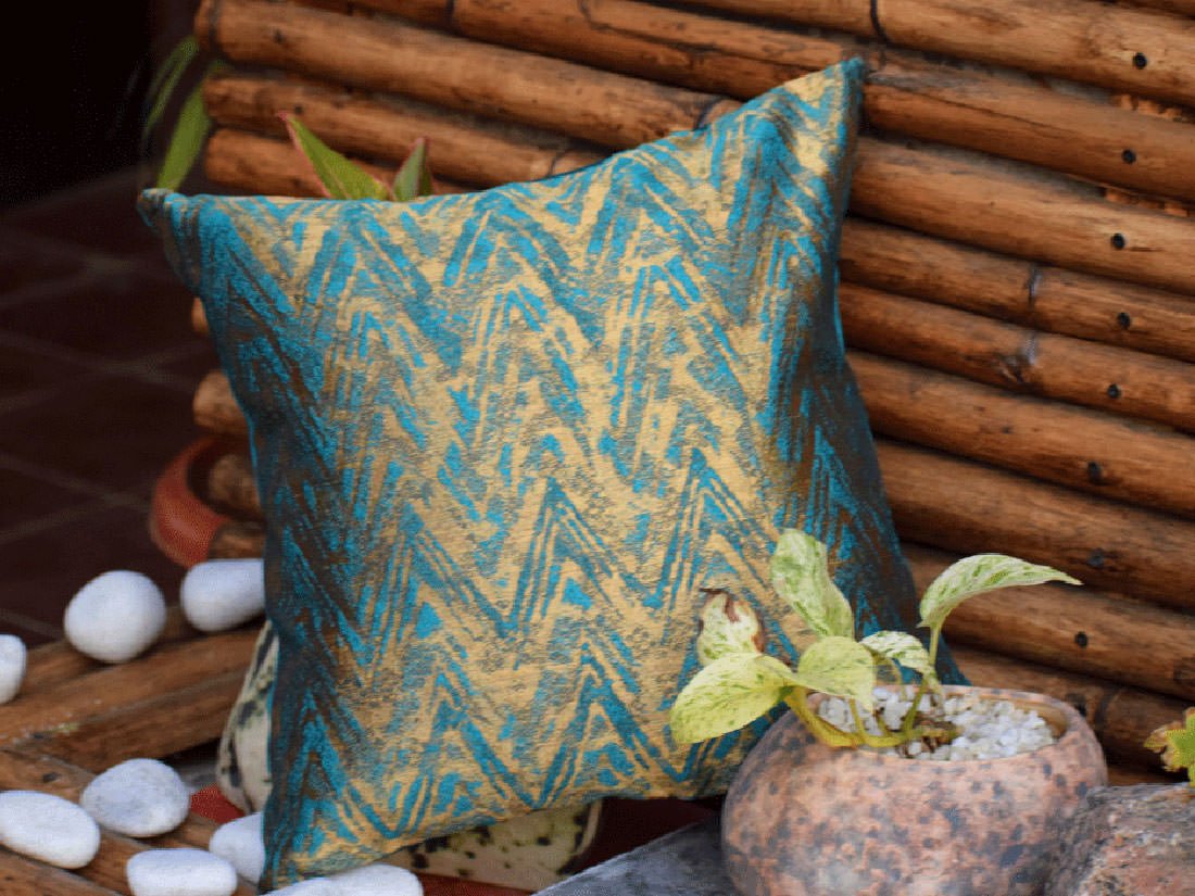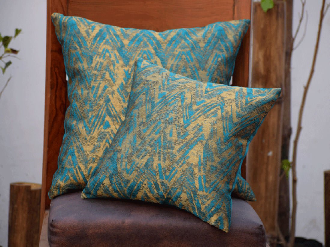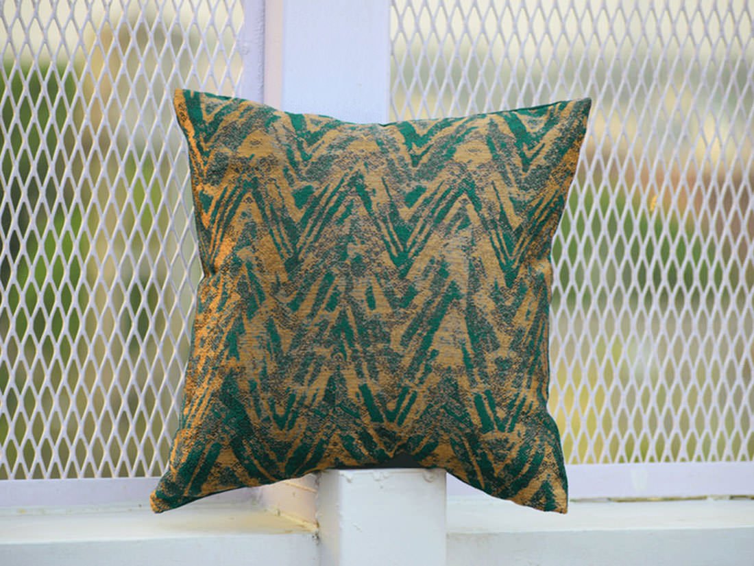 • Color & Design: Premium Quality “TEAL GREEN & GOLDEN WORK Contemporary ‘ZIG ZAG’ Design” Brocade Cushion Covers