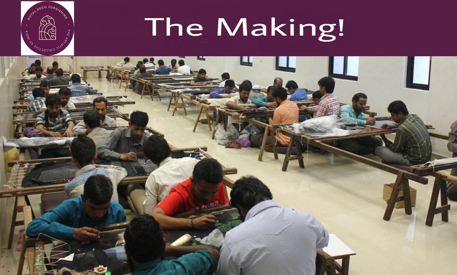 Made by very skilled Craftsmen also called as Kaarigars of the country, each piece takes a high level dedication and time using Gotta, Dubka & Zari thread to create their intricate artwork on fabric. It is the Legacy of quality, hand crafted work made by hand- one at a time that reflect the true values of Indian culture. The courtyards of ‘Royal DecoFurnishing’ are usually buzzing with Kaarigars quietly creating products or working on the design idea. “We Believe that its the ability of observation merged with a great deal of sensitivity, which hones a Designer’s Oeuvre”.