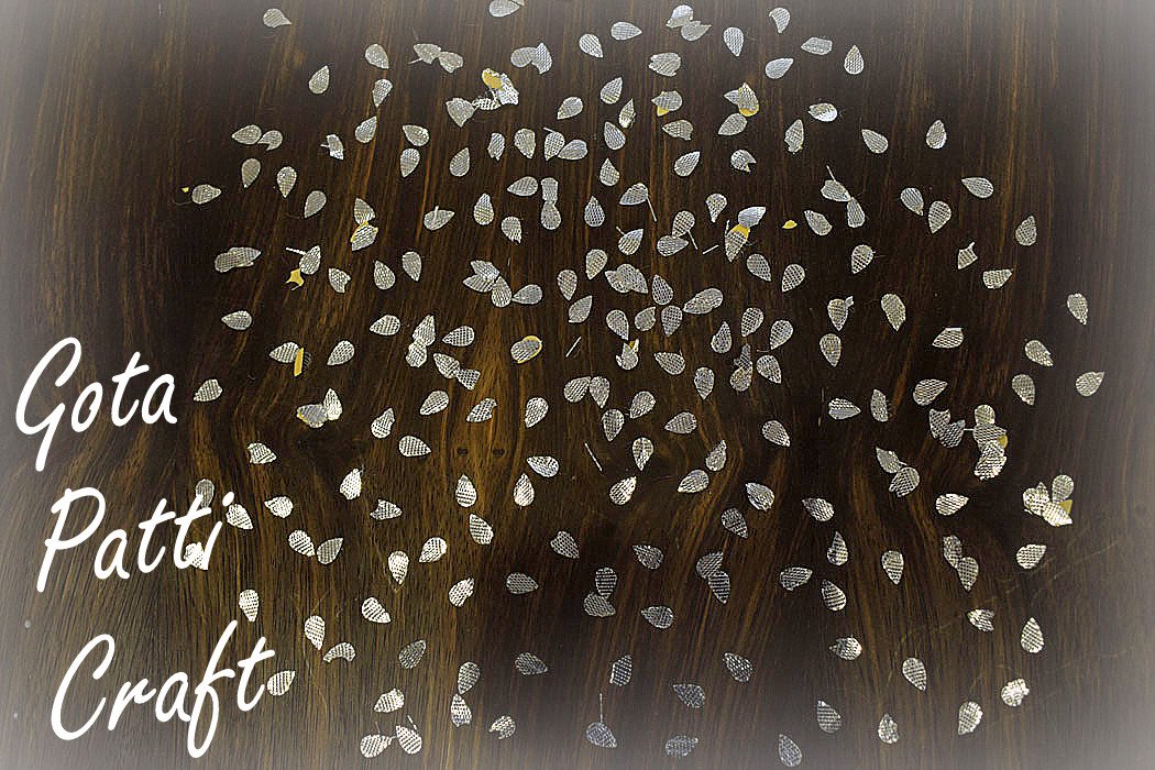 Gota patti or gota work is a type of Indian embroidery that originated in Rajasthan, India. It uses the applique technique. Small pieces of zari ribbon are applied onto the fabric with the edges sewn down to create elaborate patterns.