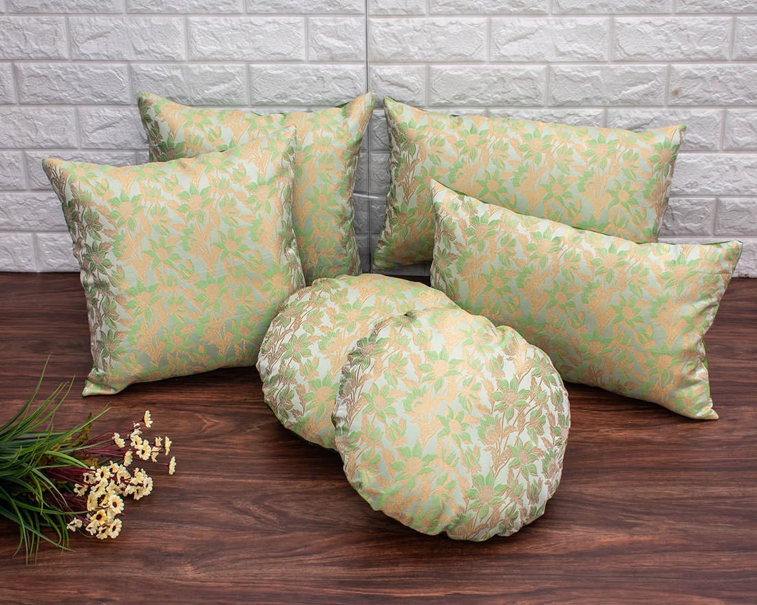 Sage Green Bageecha Floral Brocade Silk Cushion Covers