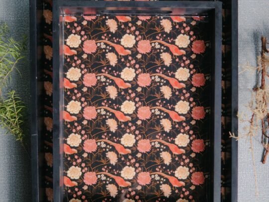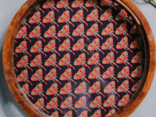 Our signature wooden serving chip-dip platter collection showcasing the beautiful grain of wood, each organically shaped trays is given a beautiful enamel print which is a fusion of Indian Modern and contemporary designs – a perfect combination of form and function. Crafted by master artisans, each piece is distinct and unique. Made with natural wood, which is food safe and their natural grain hand enameled coating further add a refined touch to these delicately crafted tableware and serve ware, ensuring the timeless beauty of these masterpieces. . The perfect accompaniment to any celebration, big or small, they make for excellent gifts item too.